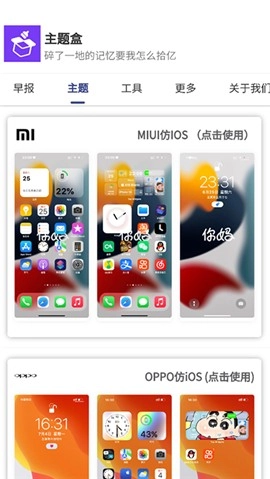 1、首先打开主题盒,在首页我们可以看到很多的手机型号仿ios的主题可以使用;