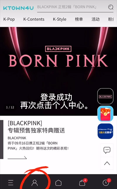 1、进入到k4town软件后,点击个人中心进行登录。