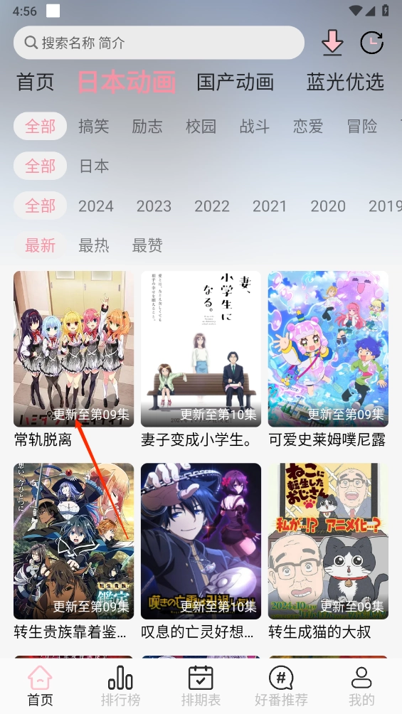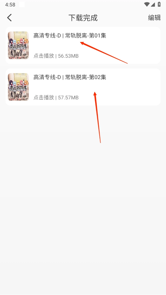 5、如图所示,对于能看到的动漫剧集,可随时进行离线观看。
