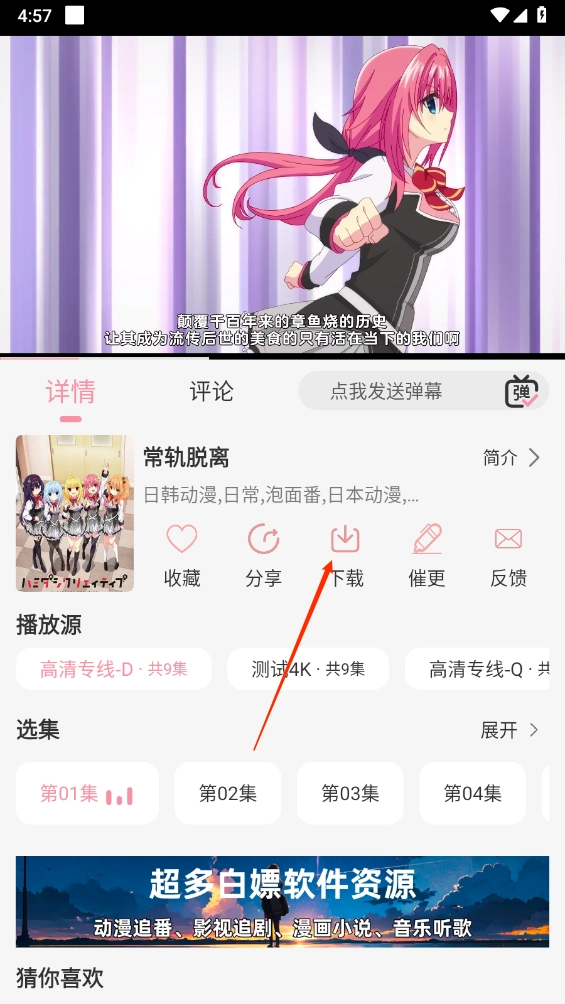2、如图所示,在动漫播放详情页点击""。