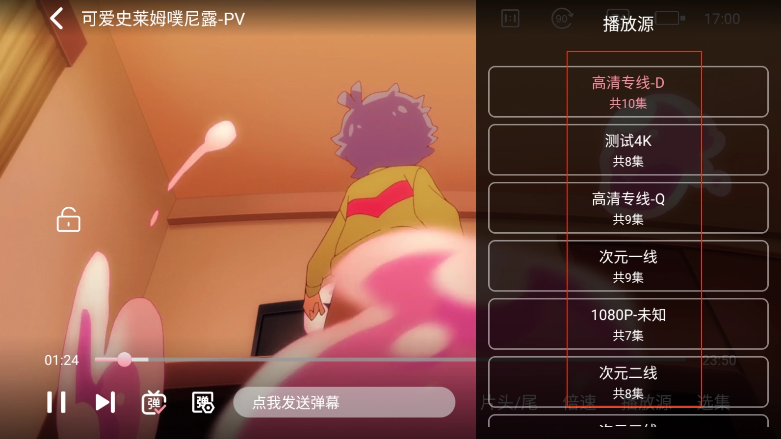 1、进入播放页面后,向左滑动屏幕来选择想要切换的播放源,具体操作可参考图示。