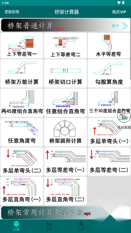 1‌、核心功能‌:包含桥架弯头角度计算、桥架爬坡计算、桥架水平弯头计算以及多层桥架过桥弯的计算,使桥架计算变得更简单便捷‌。