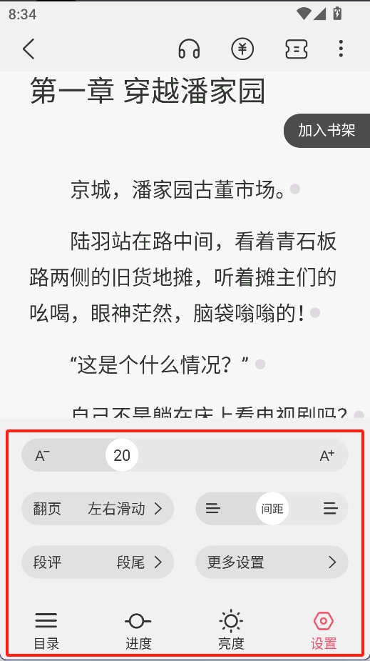 6、阅读设置:在阅读界面能够对字体大小、背景颜色等阅读相关设置进行调整,从而获得更为舒适的阅读感受。
