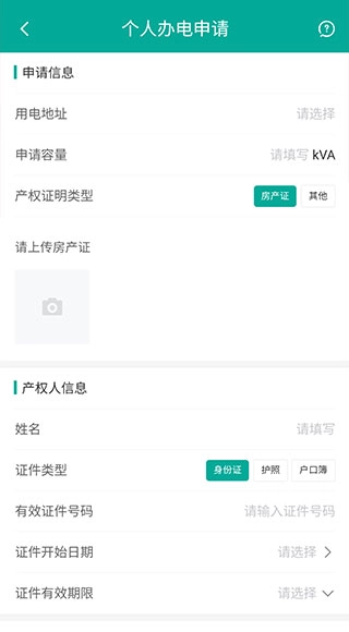 4、进入对应的办电申请页面,填写所有必要的信息。