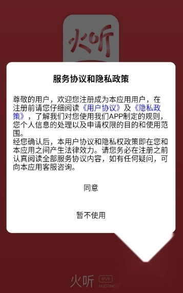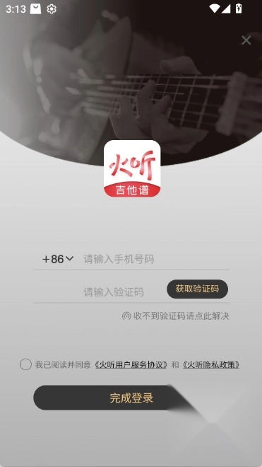 1.安装火听吉他谱,打开后点击同意