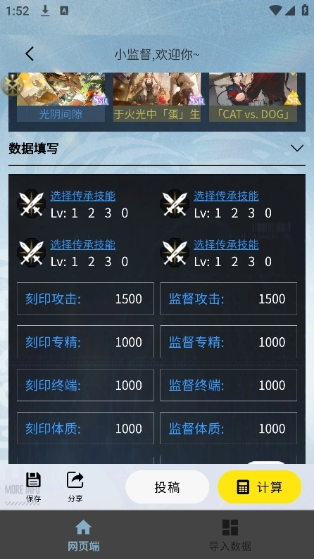 当前配队计算数据保存功能:下次可使用该配队记录快速填充页面数据