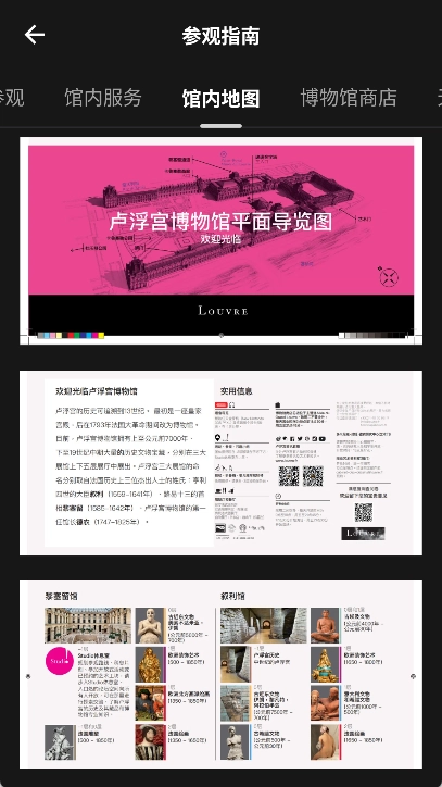 你可以选择自己感兴趣的城市,像法国巴黎这类,系统会为你提供该城市博物馆的详细信息。