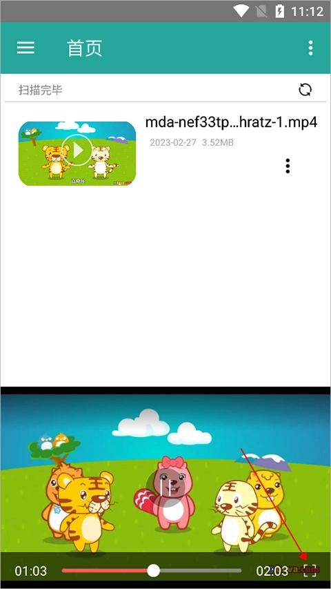 3、点击播放画面后,可点击播放画面右下角的全屏图标(下图红色箭头所指处)来实现视频的全屏播放