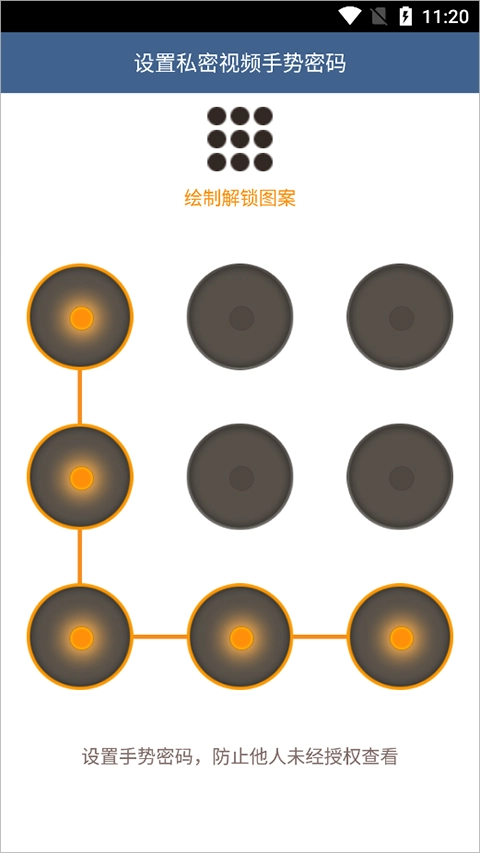 而后在新打开的页面中绘制手势密码,再重新输入一遍刚才的手势密码进行确认