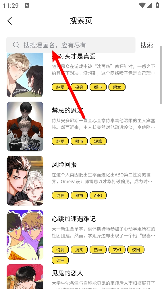 1、输入漫画名称、作者、角色或特定情节等关键词,即可快速找到并阅读自己喜欢的漫画。