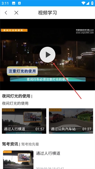 4、进入视频播放界面,可观看实操讲解内容,辅助科三考点的学习。