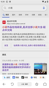 2、执行搜索操作后,搜索结果页面会呈现软件默认配备的搜索引擎接口。