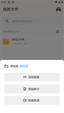 2、在这里可以选择添加链接,添加种子或者新建目录等选项。