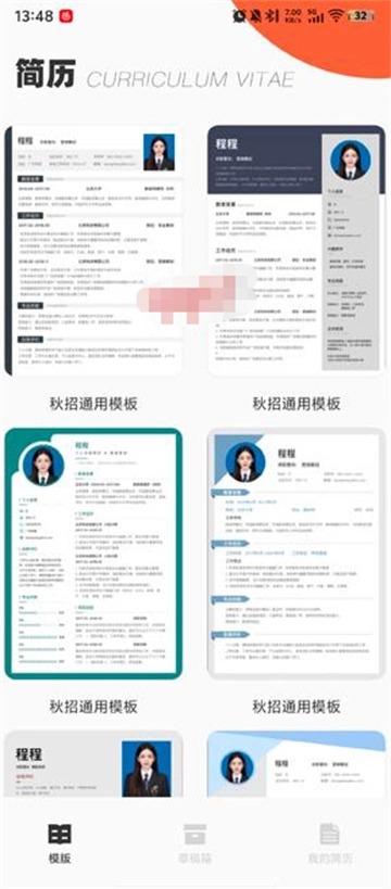 在简历制作界面选择你需要的简历模板。