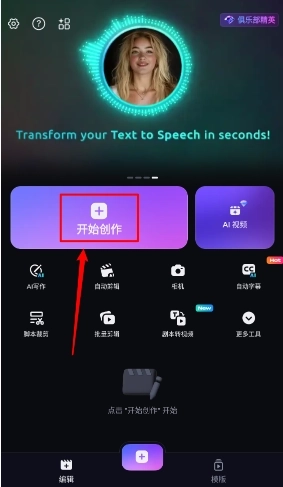 2、在主页点击"开始创作",如图。