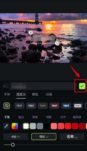 3、在此处点击“添加字幕”按钮,接着输入字幕内容,之后可以对字体、字幕颜色、大小等参数进行选择设置,全部完成后点击“对钩”图标确认即可。