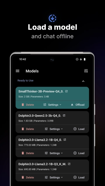 PocketPalAI是一款离线AI助手,语言模型直接在设备本地运行,不需要依赖互联网连接。