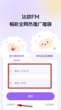 1、在本站获取达咩FM广播剧后,打开应用进入主界面。若还没有账号,需先注册一个账号。