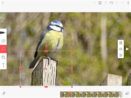 全部画完之后,点击预览,可以看到鸟就动了起来,如果需要做一些修改,可以长按下方帧缩略图,可以删除或者复制帧等。