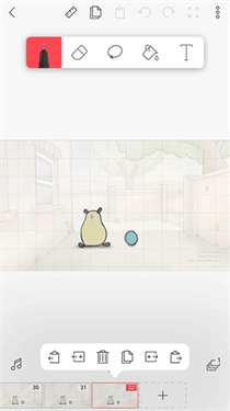 项目建好之后,我们进入了编辑界面,可以看到上方有画笔橡皮擦等工具,下方则是每帧的缩略图。