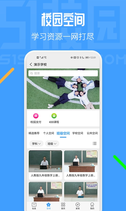 5、【空间】:涵盖教育专网、校园微网、智慧校园、安全教育、新闻动态等板块。