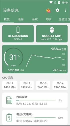 3、传感器状态监测:检测手机各种传感器状态,如陀螺仪、加速度计、磁力计等,知晓设备的感应功能是否正常。