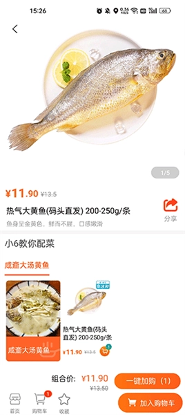 3、挑选好心仪的菜品后,点击黄色图标把它添加到购物车,接着在购物车里完成支付就可以了。