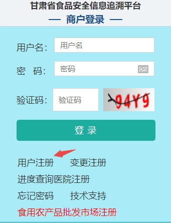 1、打开陇上食安//www.gsspaqw.org/sycms/,点击页面中的“商户注册”按钮。