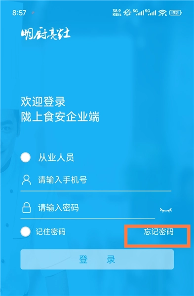 1、打开陇上食安商户端App,账号是手机号,密码不知道可以找回