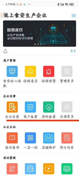 3、企业自律栏的内容,是企业每周必须落实的常规项目。企业在开展日常生产经营与食品安全工作时,需首先完成“商户”“原料”“产品”的备案,这是启用陇上食安系统的首要步骤。