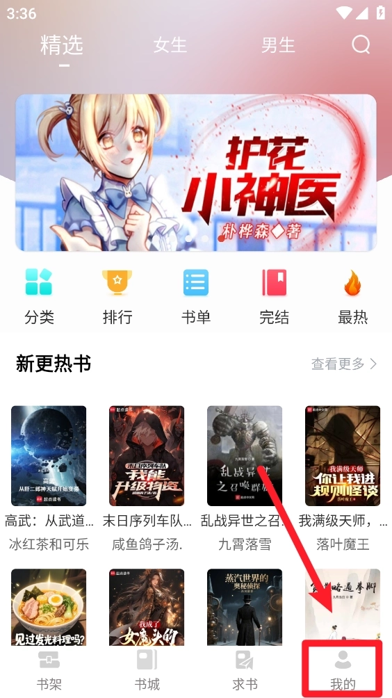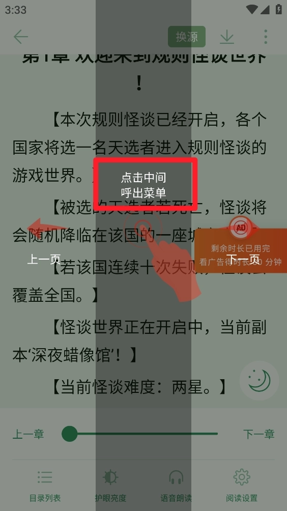 2、在书城中挑选任意一本你喜欢的小说资源,进入阅读界面后呼出菜单。