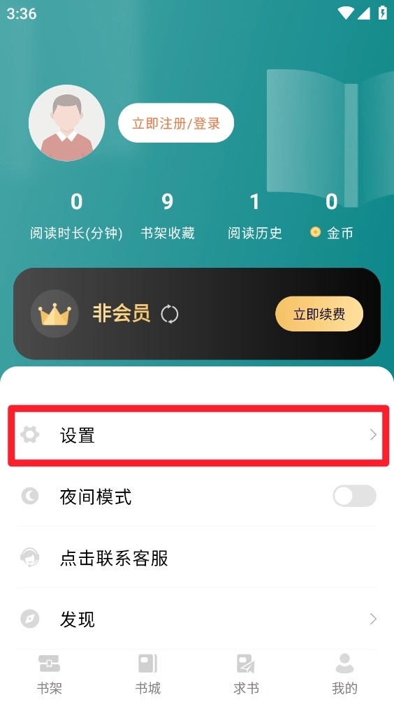 2、如图,在我的页面点击"设置"一键进入。