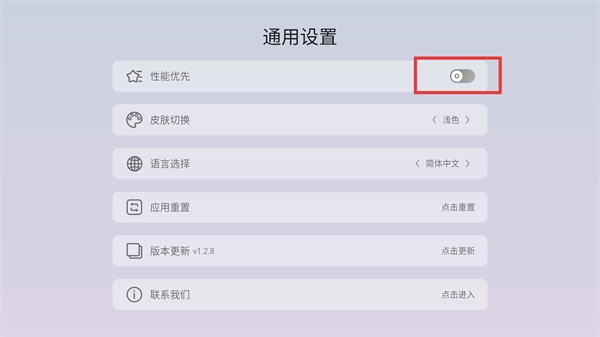 2、在通用设置页面中,找到【性能优先】选项,其右侧开关当前处于关闭状态,点击可启用该功能。