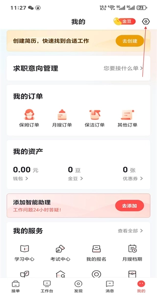 打开软件后,进入“我的”页面,在页面中找到求职意向管理等板块,接着点击右上角的设置按钮,即可进入对应的设置页面。