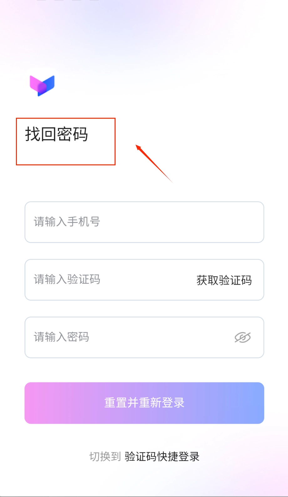4、设置好新密码后,点击重置并重新登录按钮,系统会自动跳转到登录界面,此时您可以使用新密码登录,也可以直接选择验证码登录,两种方式都能顺利访问账户。