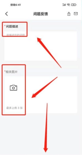 进入问题反馈界面,输入问题描述、上传相关图片,点击【提交】。