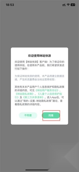 1、进入软件后,玩家需点击【同意】按钮,才能启动软件并开始使用。